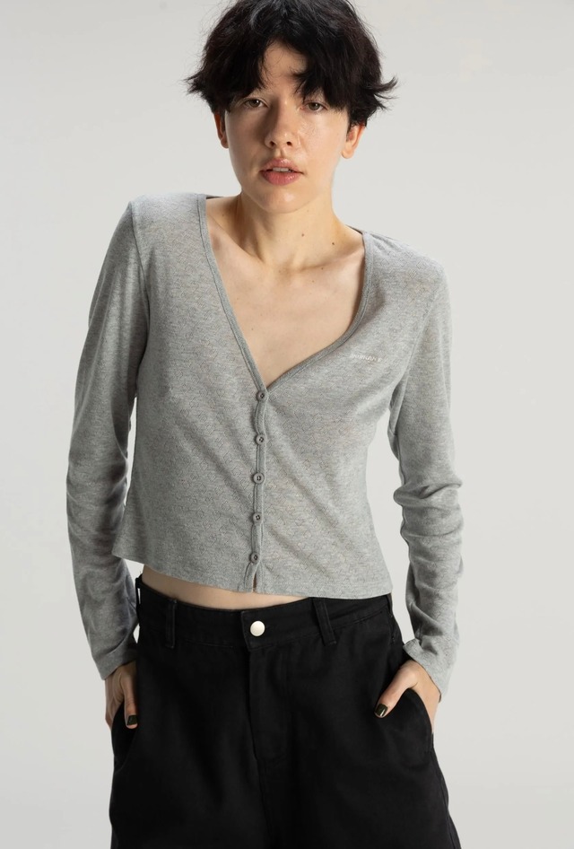 柔らかく着心地の良いタイトフィットカーディガン。 メッシュ状で表現しirojikakeのロゴは胸元に。 下に着た服が裾から少し出るように 短丈に設定した着丈。 1枚で着てパンツとかを合わせた時に少しだけ 素肌が見えるように。 ヘルシーな色気も出してくれます。 【素材】 ポリエステル 83% 綿 17% 【サイズ】 S肩幅34c m身幅40cm着丈47.5cm袖丈60cm M肩幅37cm身幅44cm着丈51cm袖丈62cm