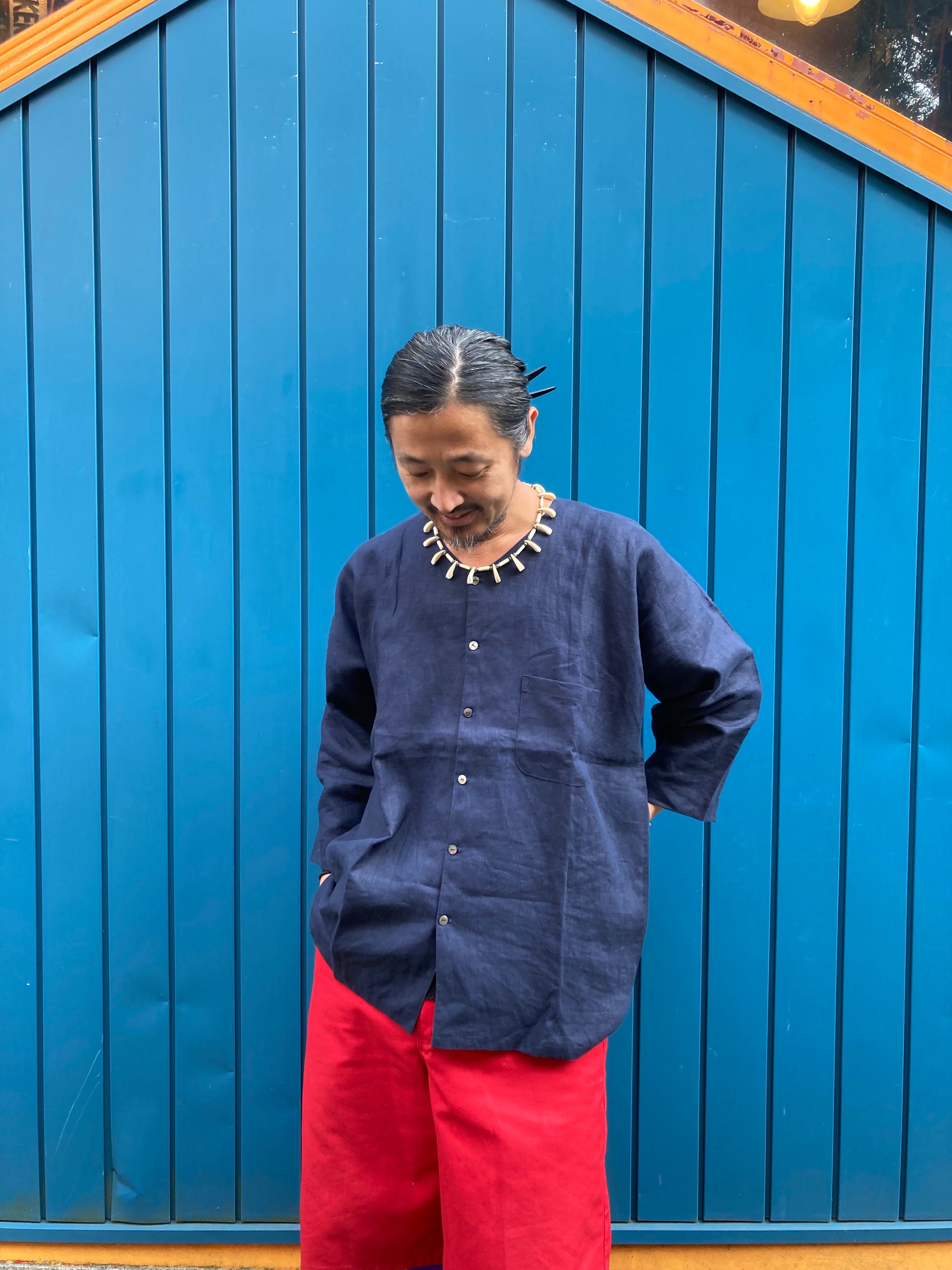 定番的に使用しているヨーロッパリネンは最初はパリっとハリがありますが、着用や洗濯を繰り返すうちに馴染み経年の変化も楽しめます。