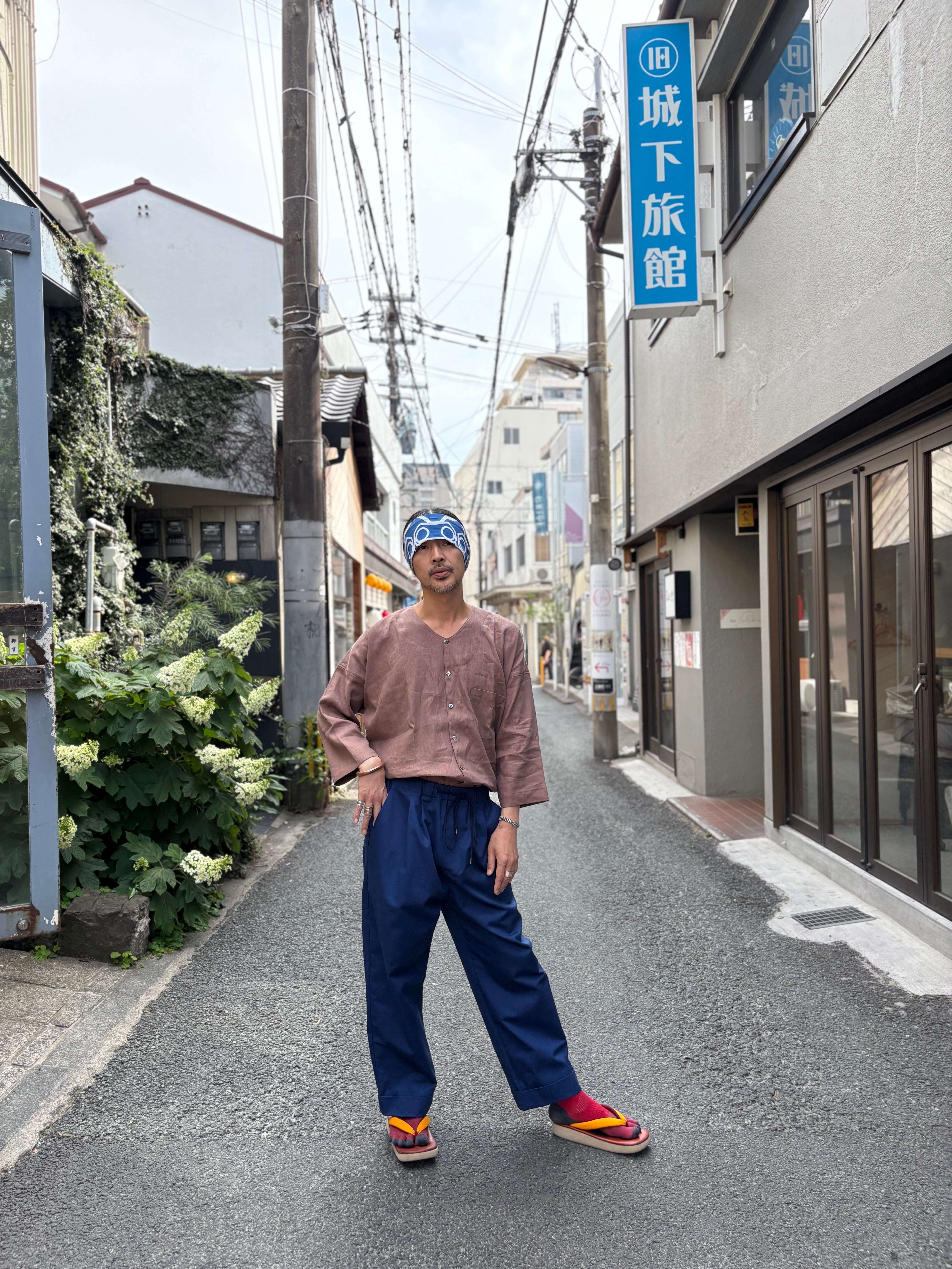 本来ダボシャツ、鯉口シャツと云えばテキ屋さんみたく任侠なイメージですが、ソレのソレを全く感じさせない振り幅の広いシャツです。