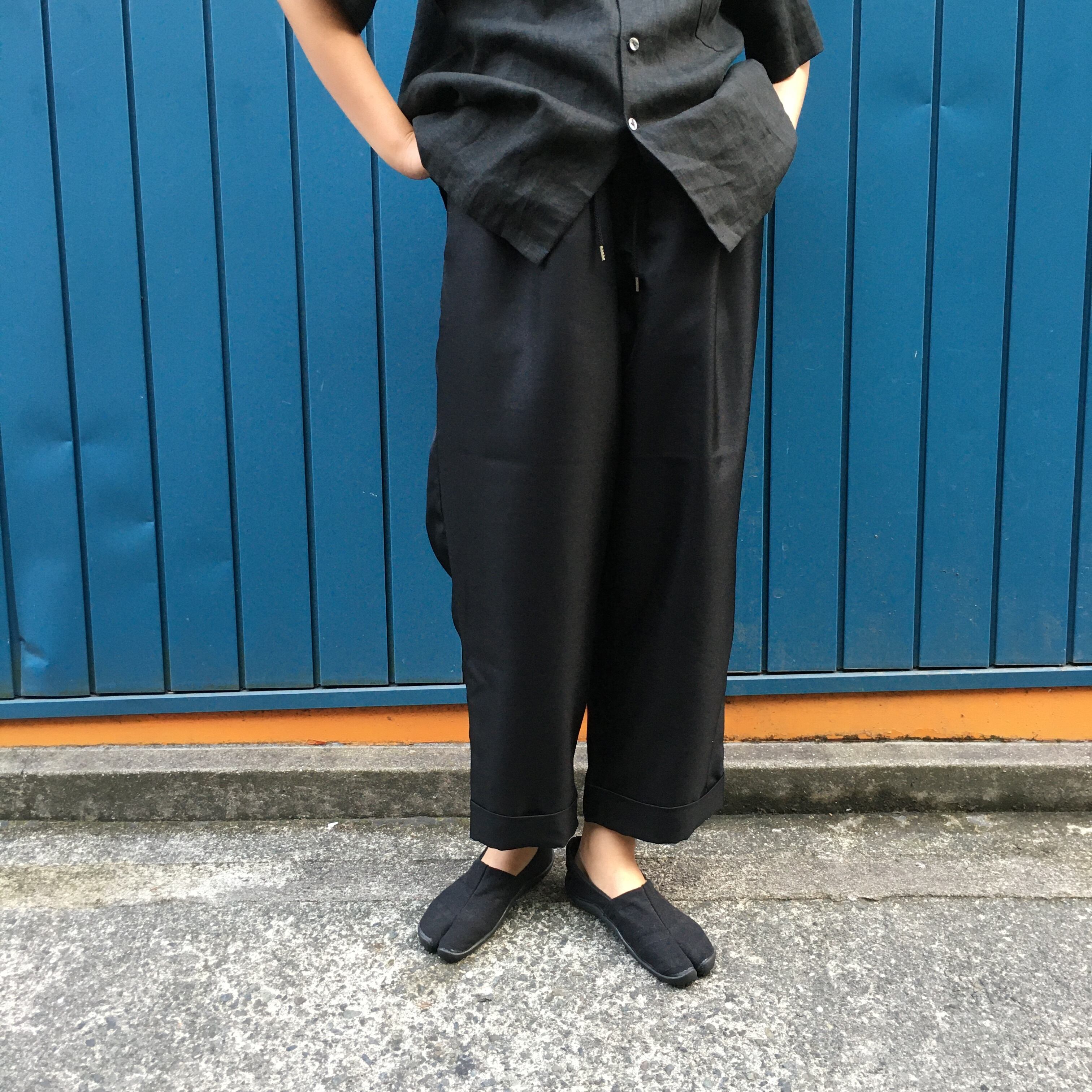 フリーサイズ設定(ユニセックス)ゆったりシルエットの2タックパンツになります。