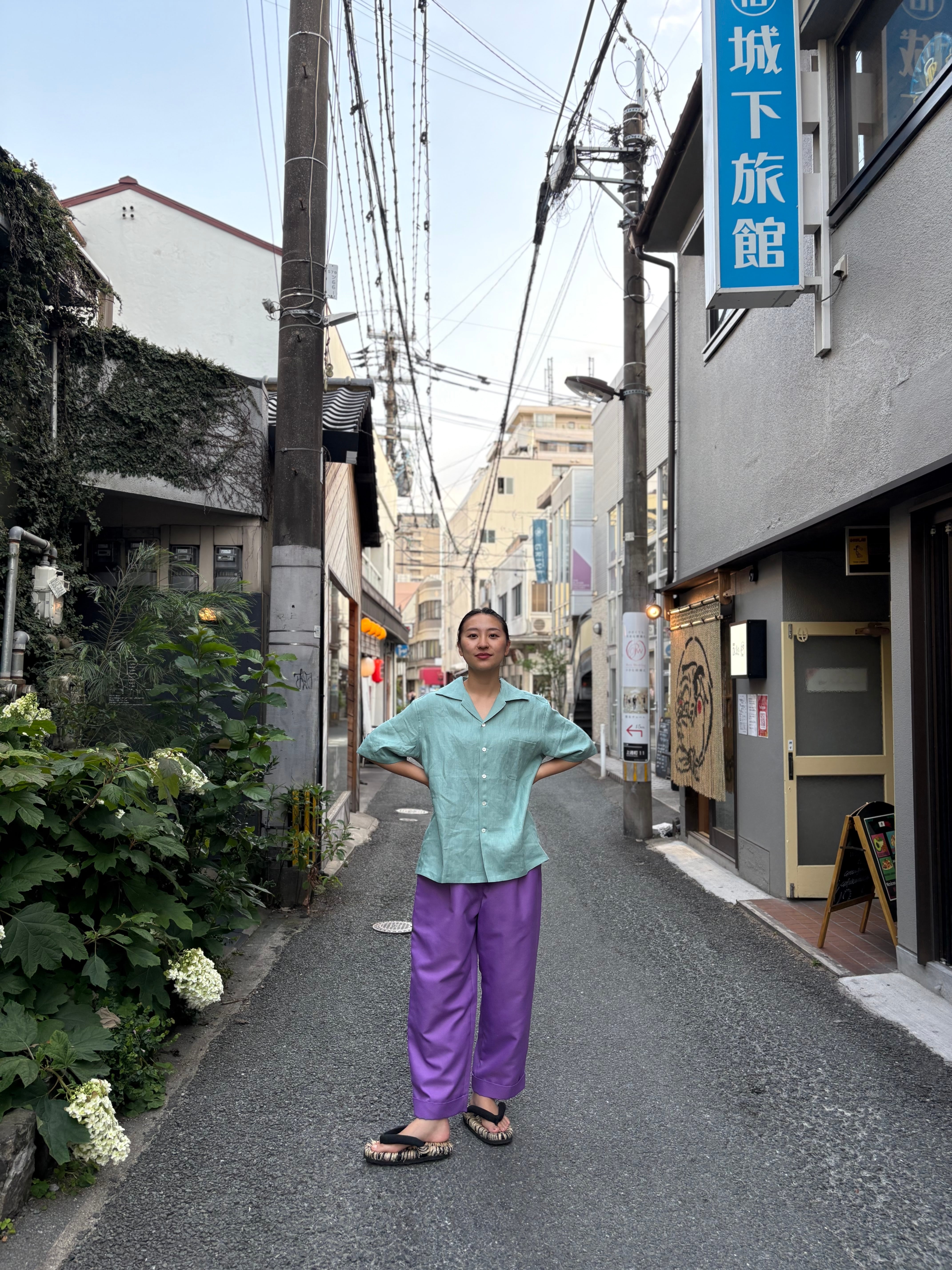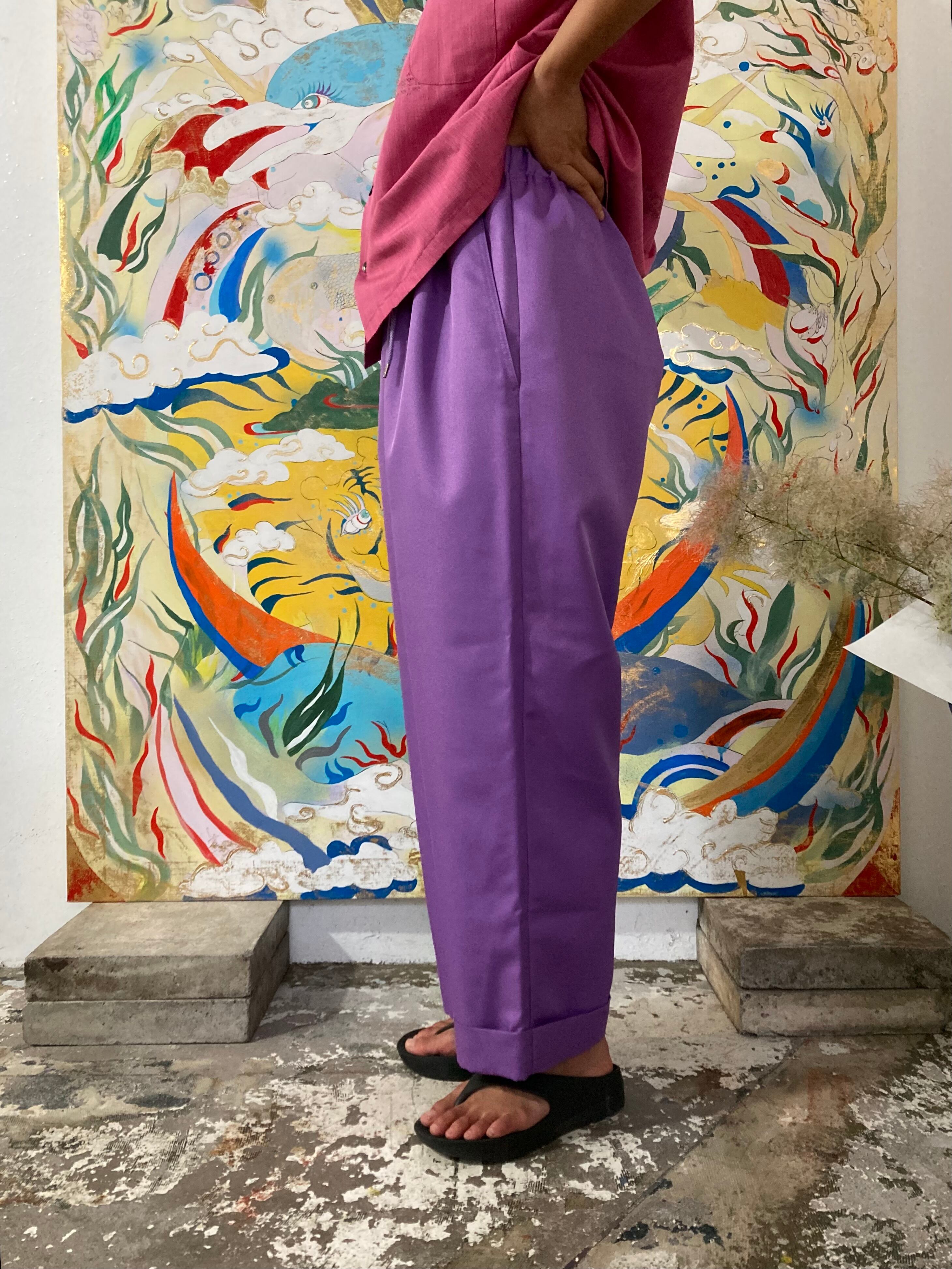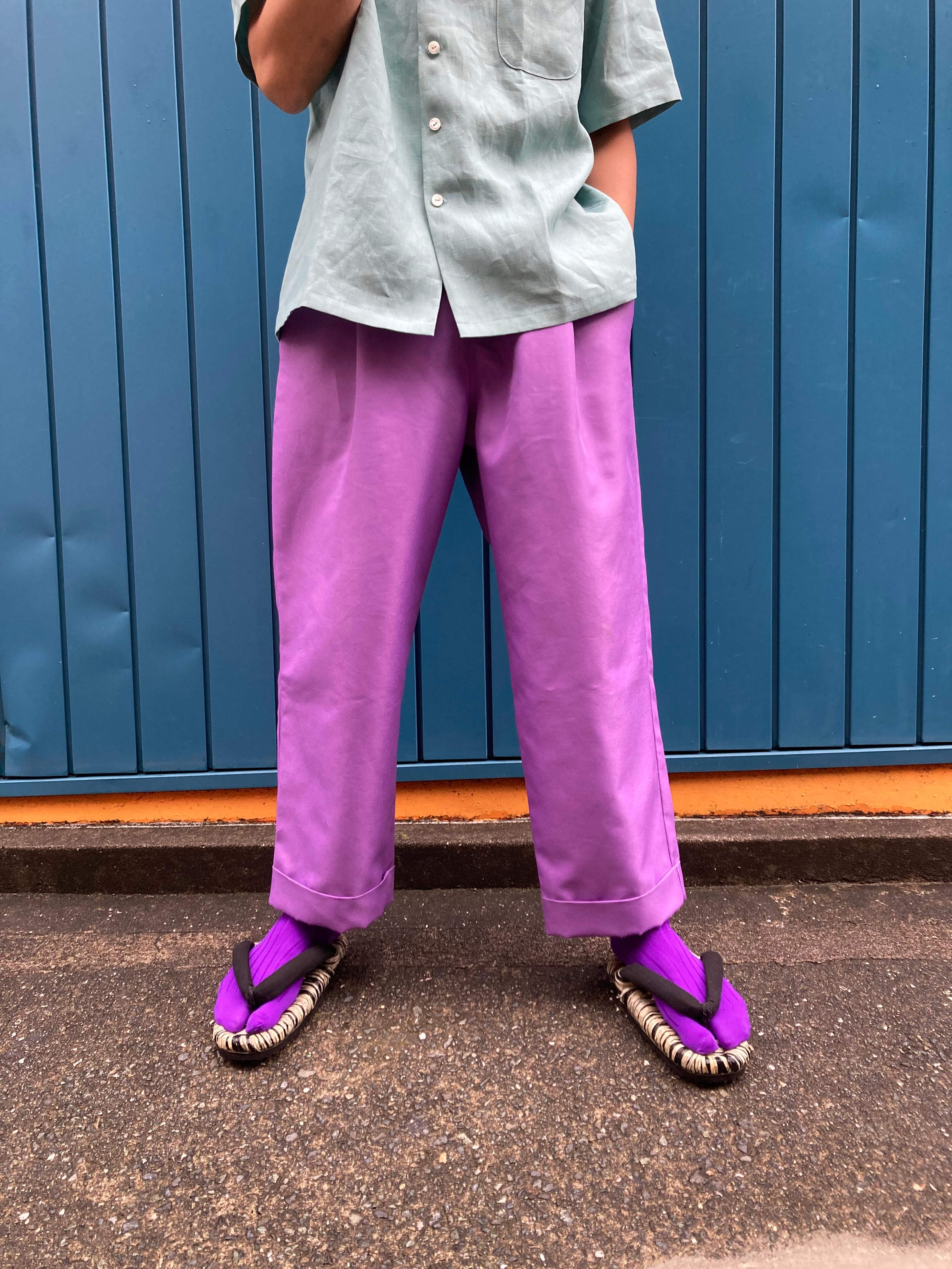 フリーサイズ設定(ユニセックス)ゆったりシルエットの2タックパンツになります。