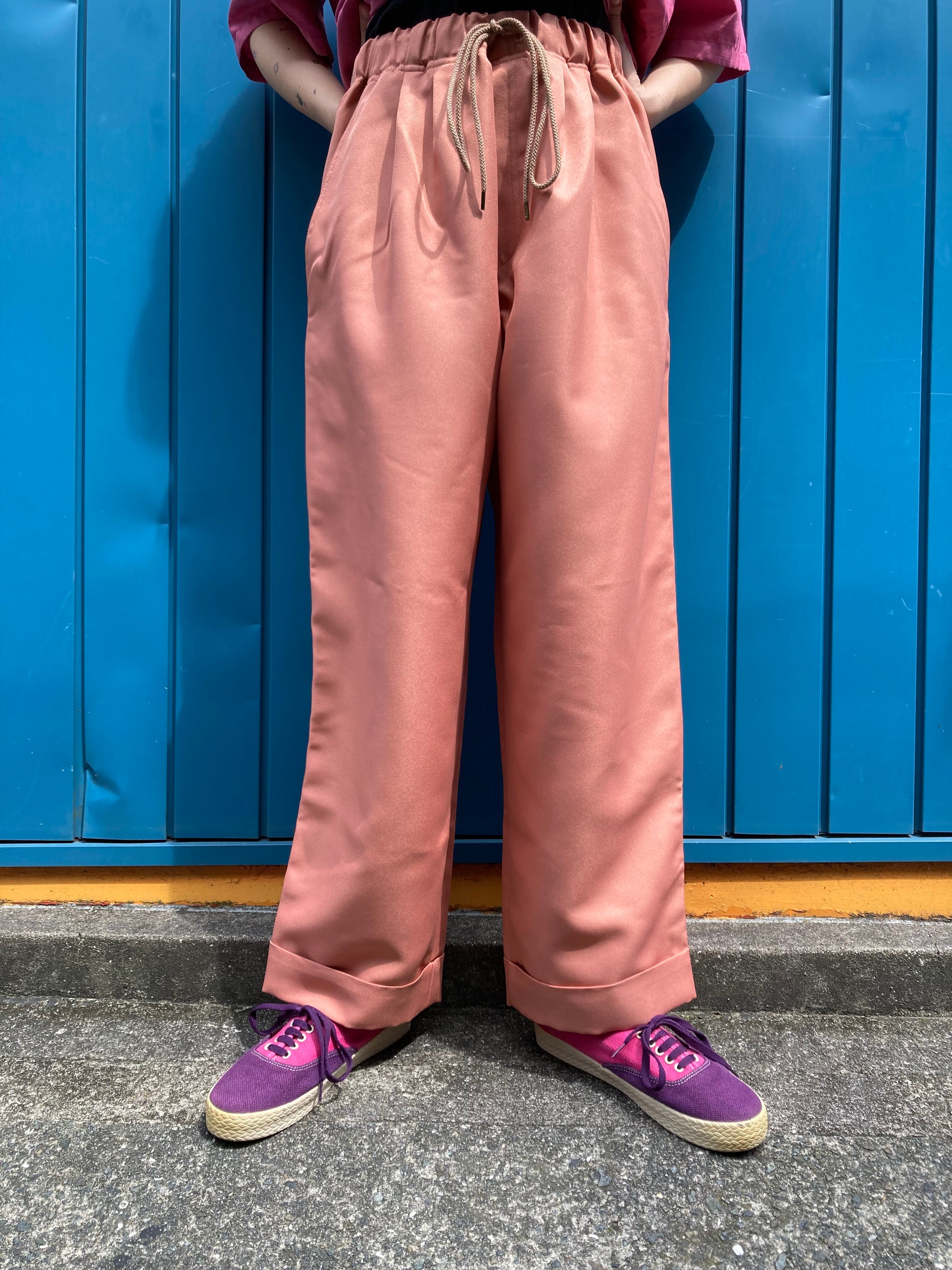 フリーサイズ設定(ユニセックス)ゆったりシルエットの2タックパンツになります。