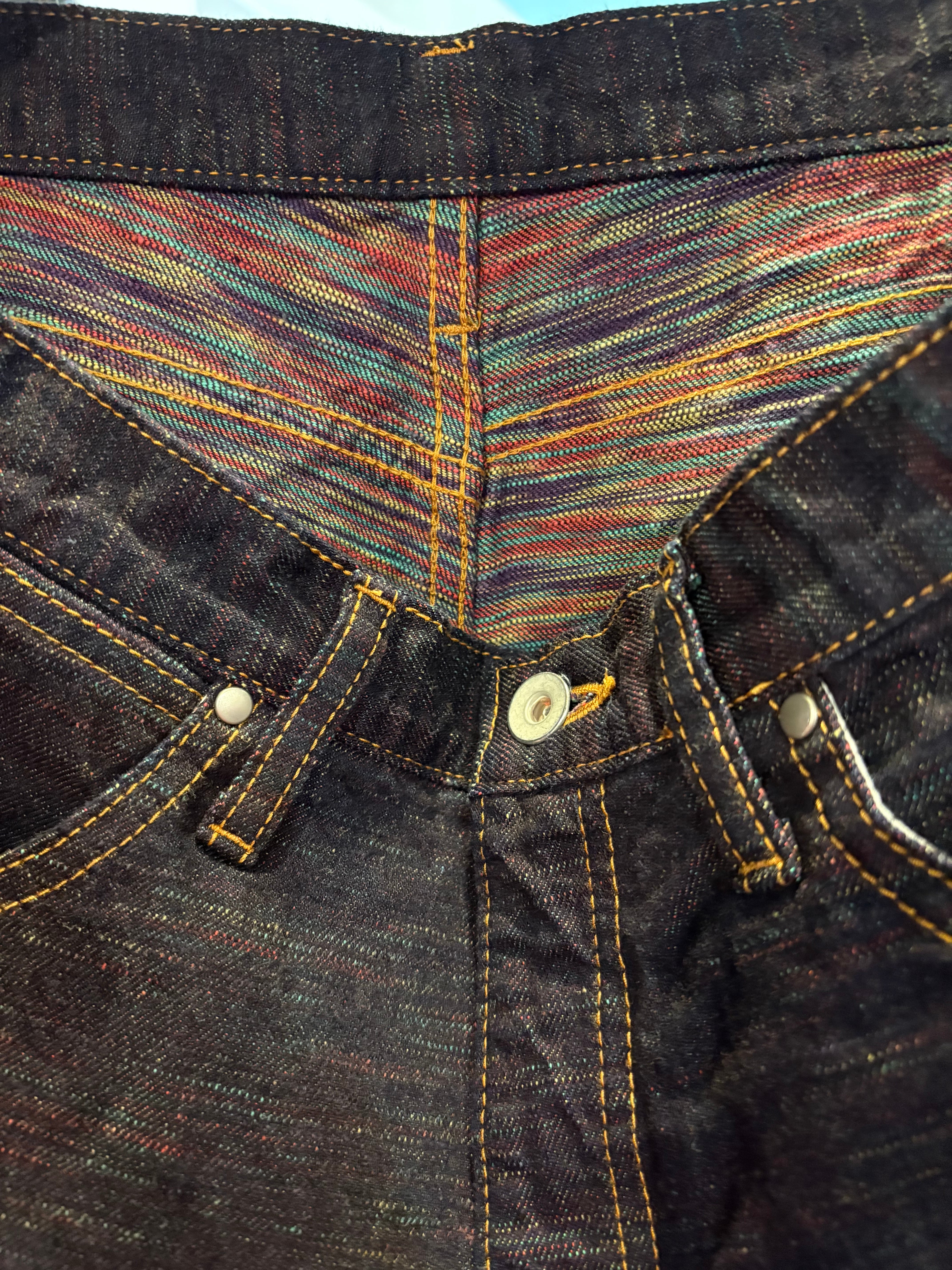 (はめ込み技法)をイメージしたカラフルなカスリ糸を使用したインレイデニムシリーズ。