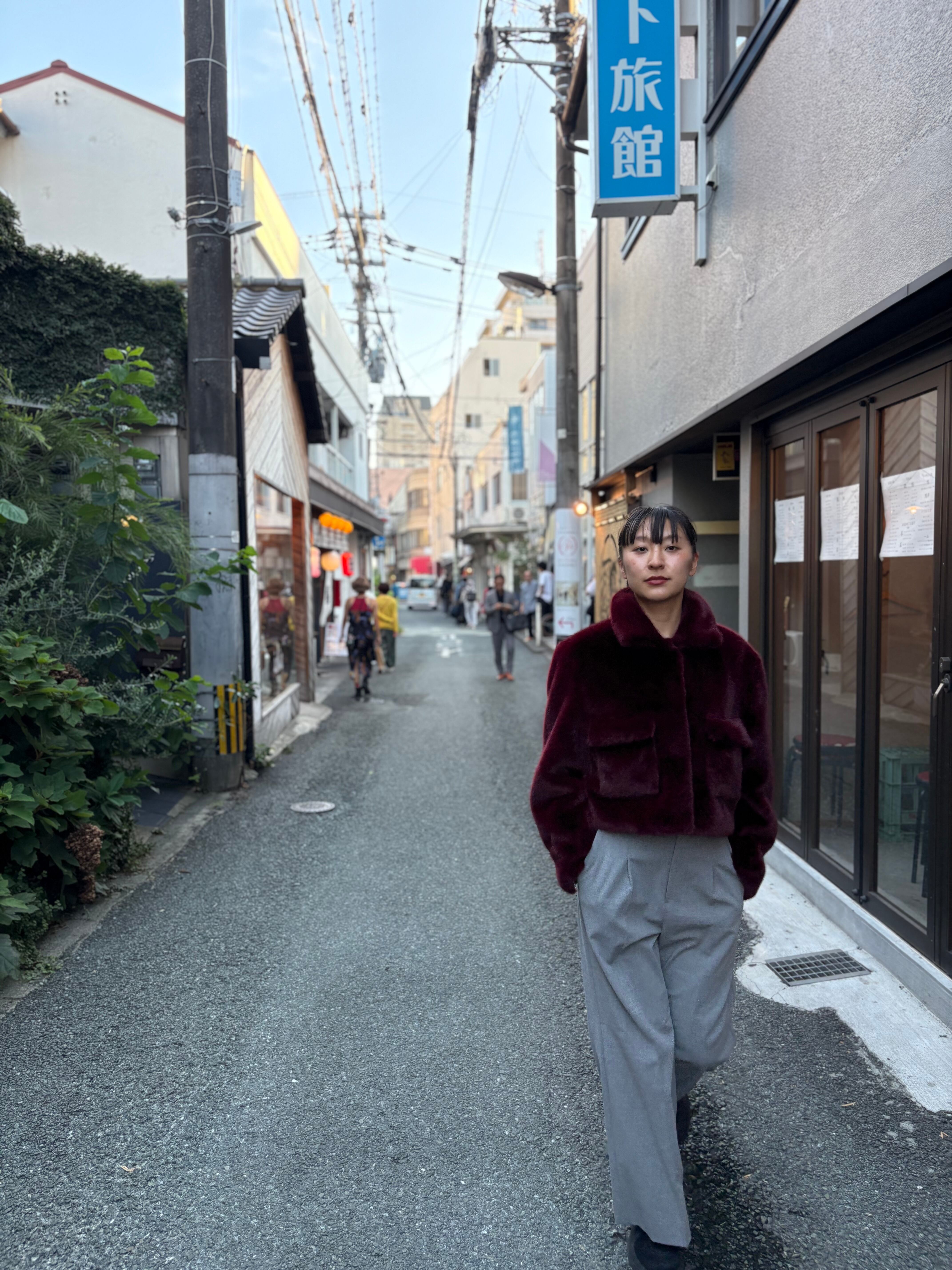 フェイクファーも出来るだけリアルに見えるもので、毛足の長さも短めのもの。すっきりとしたイメージで着られます。