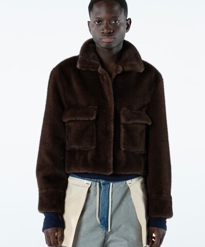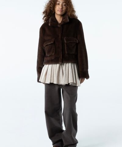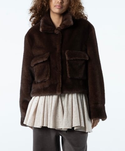 フェイクファーも出来るだけリアルに見えるもので、毛足の長さも短めのもの。すっきりとしたイメージで着られます。