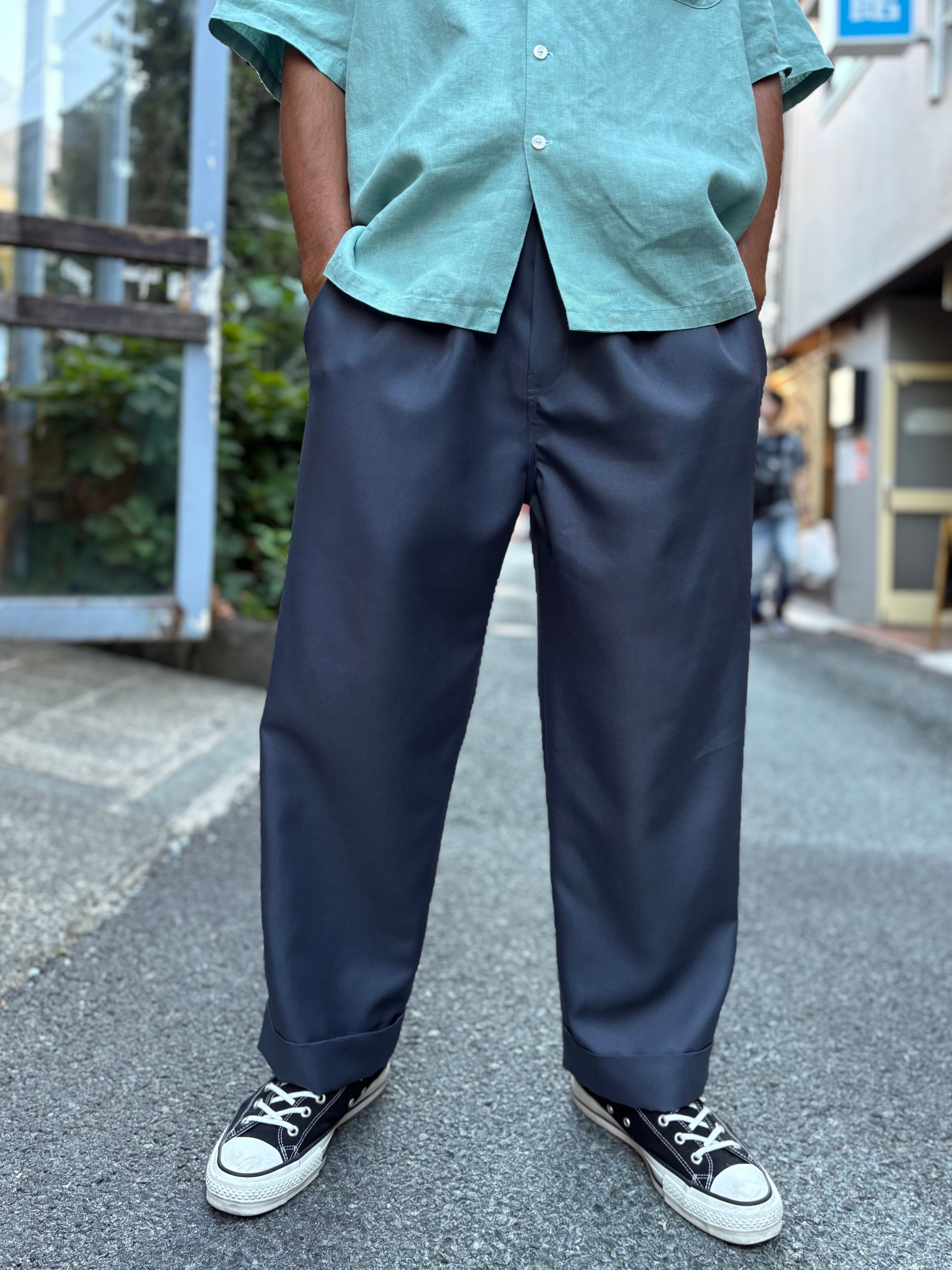 フリーサイズ設定(ユニセックス)ゆったりシルエットの2タックパンツになります。