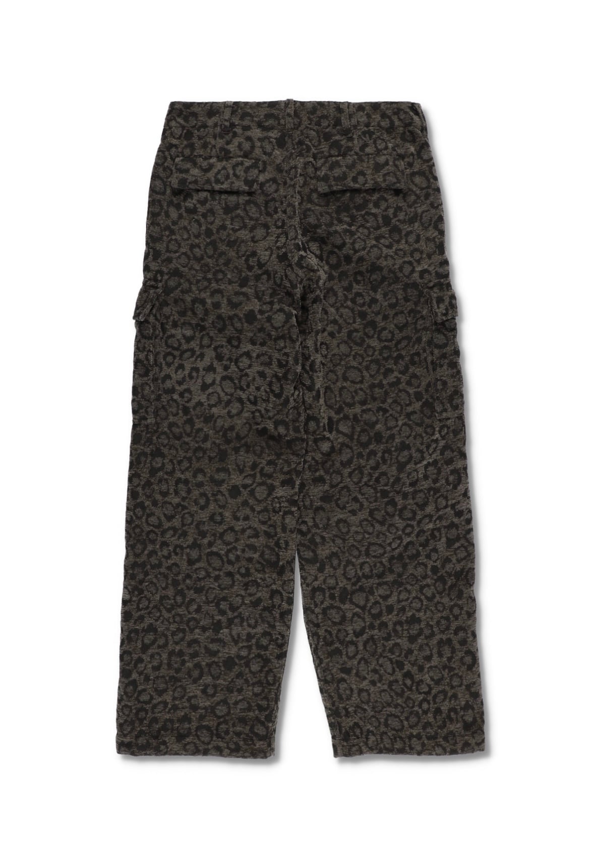 多色で織られたゴブラン織りのレオパードパンツ。膝のタックやカーゴポケットなど、立体感のあるディテールを多く取り入れた一本。