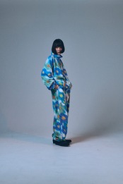 フィクショナルフラワー「ICIRIA」をぼかし表現で転写プリントしたオリジナルタフタ。
