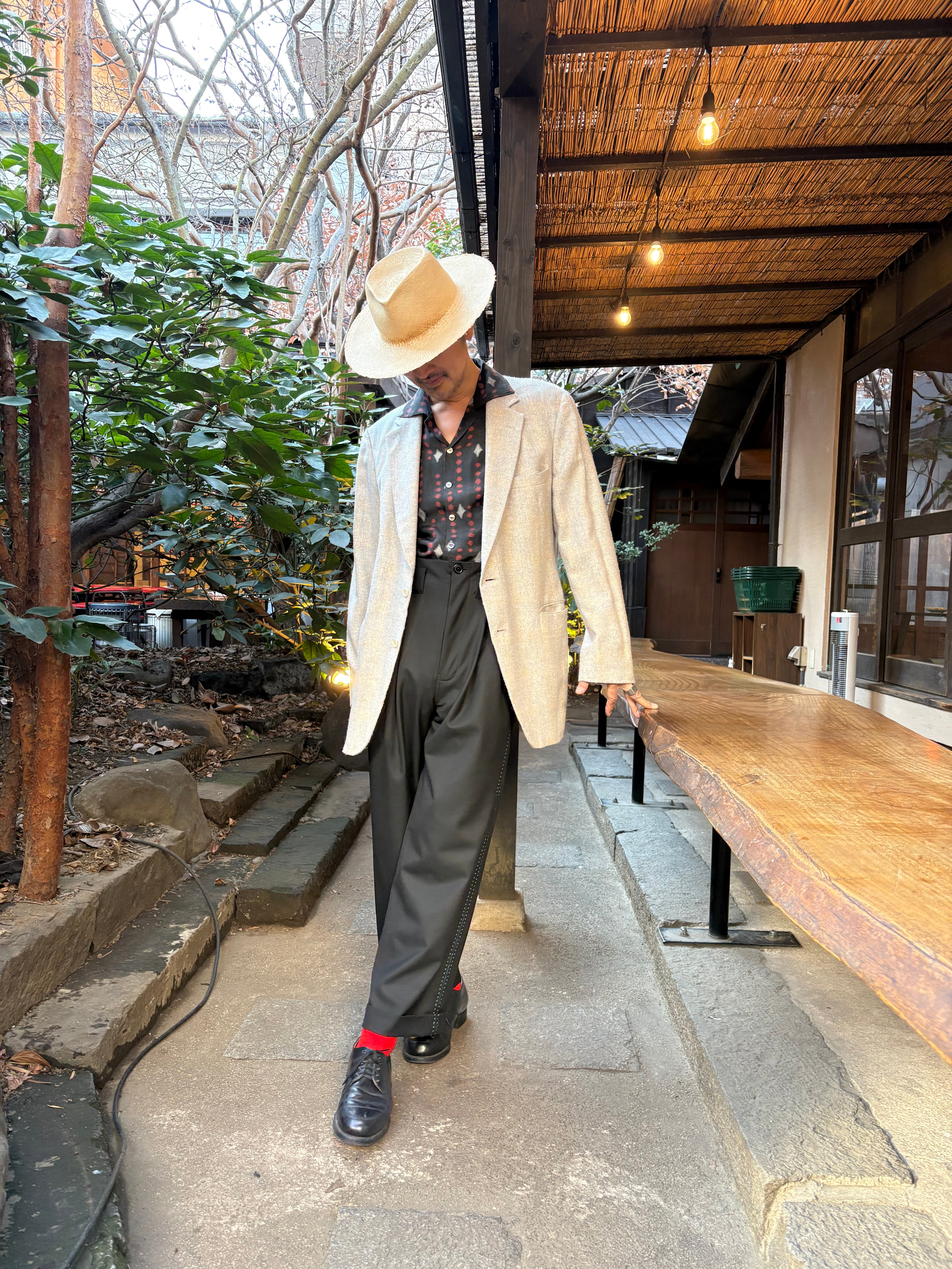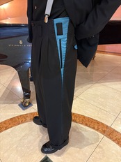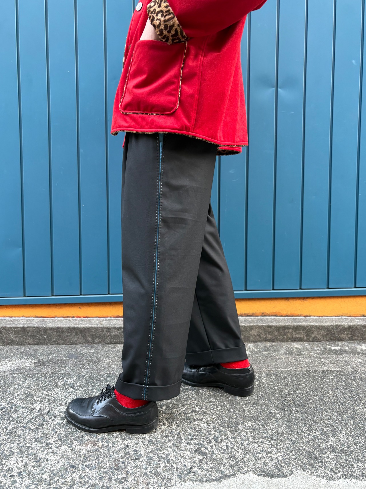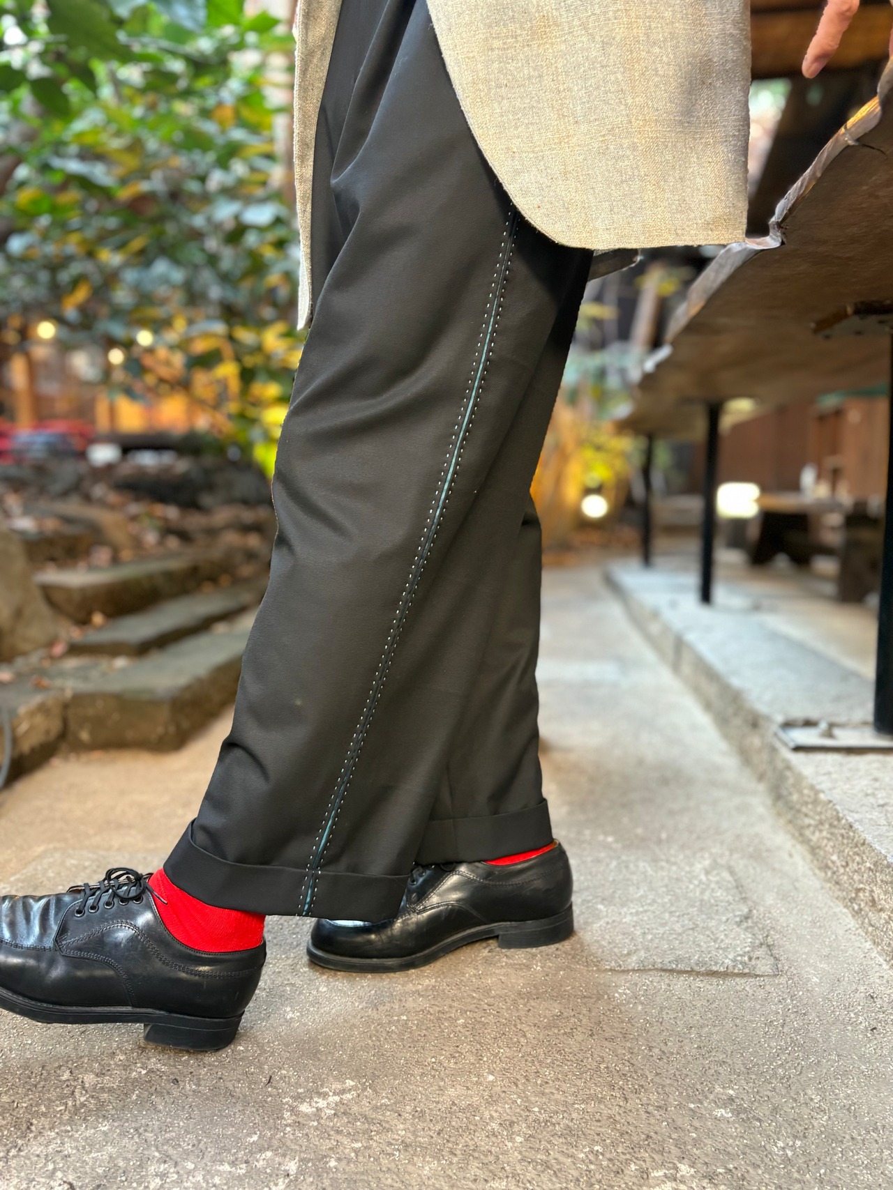 そのままチラリとさり気なくのぞく切り替えのプリーツラインこそが、このピストルパンツの顔。