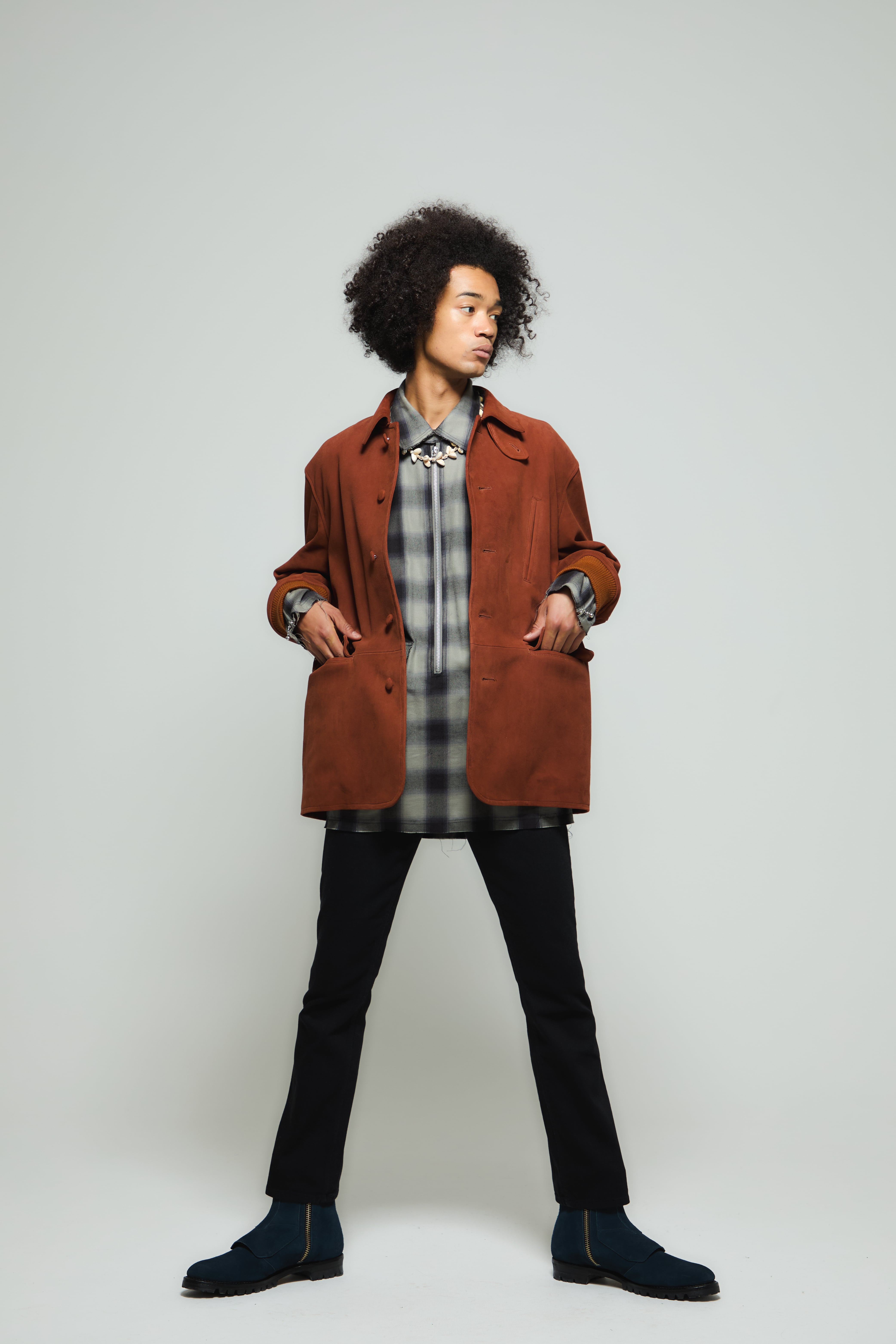 上質微起毛なシープスウェードを使用した程よくゆるいシルエット