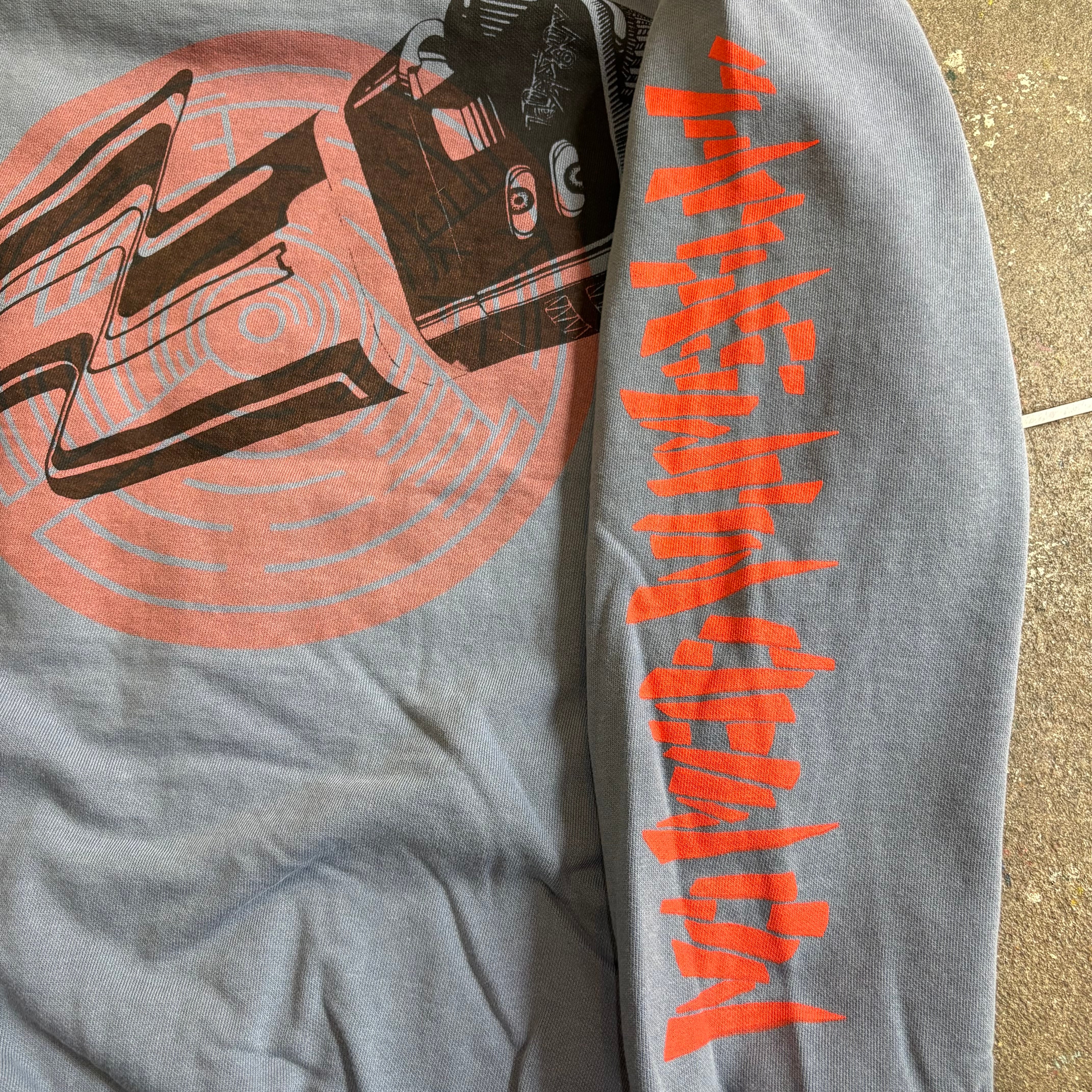 シルクスクリーンプリントはセルフプリント為、ズレや掠れムラ、色飛びなどがございますが、それも全て作り手の意図や、デザインのアジとしてご理解頂ければと思います。