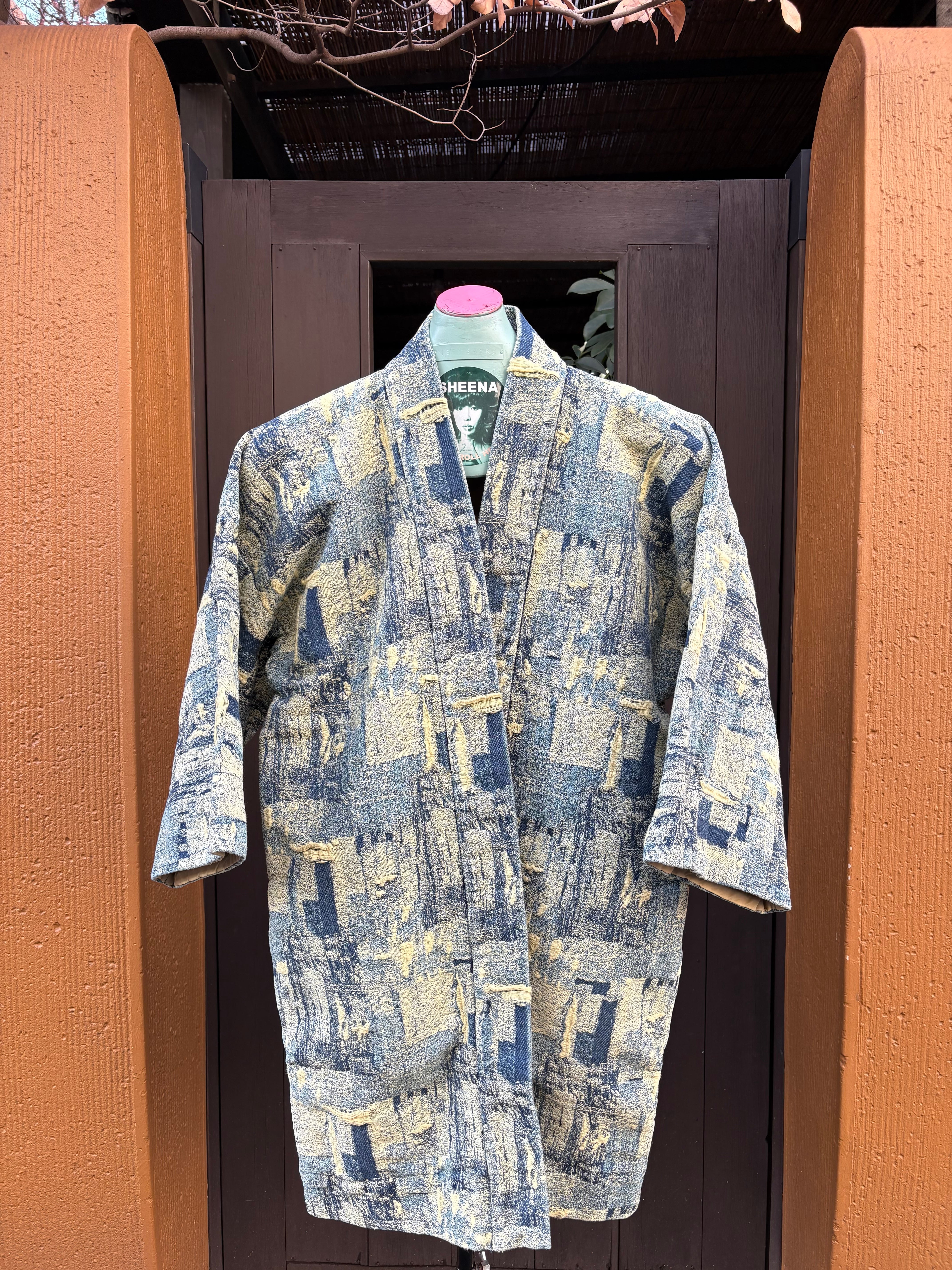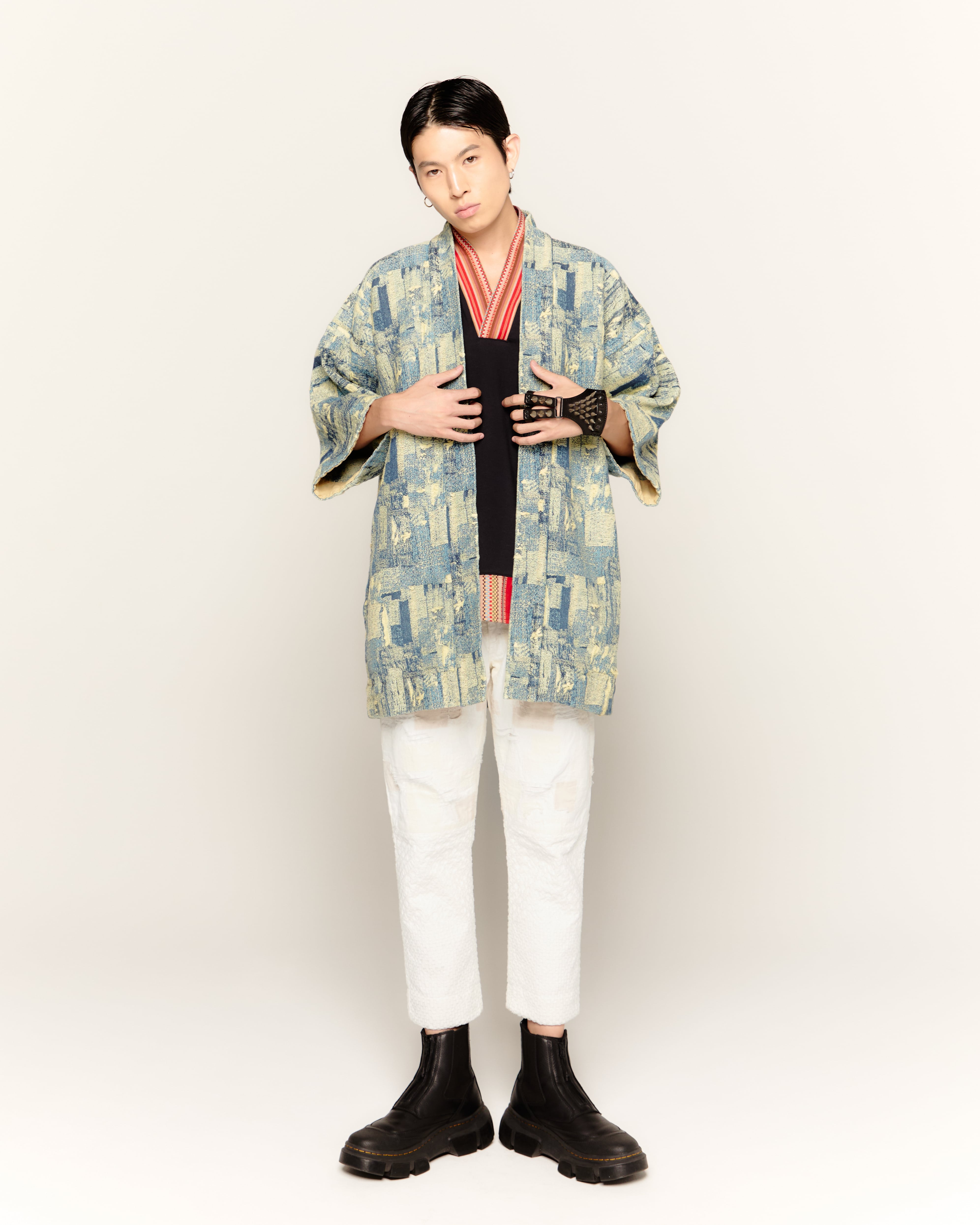 ツギハギをジャガードで表現した羽織り。