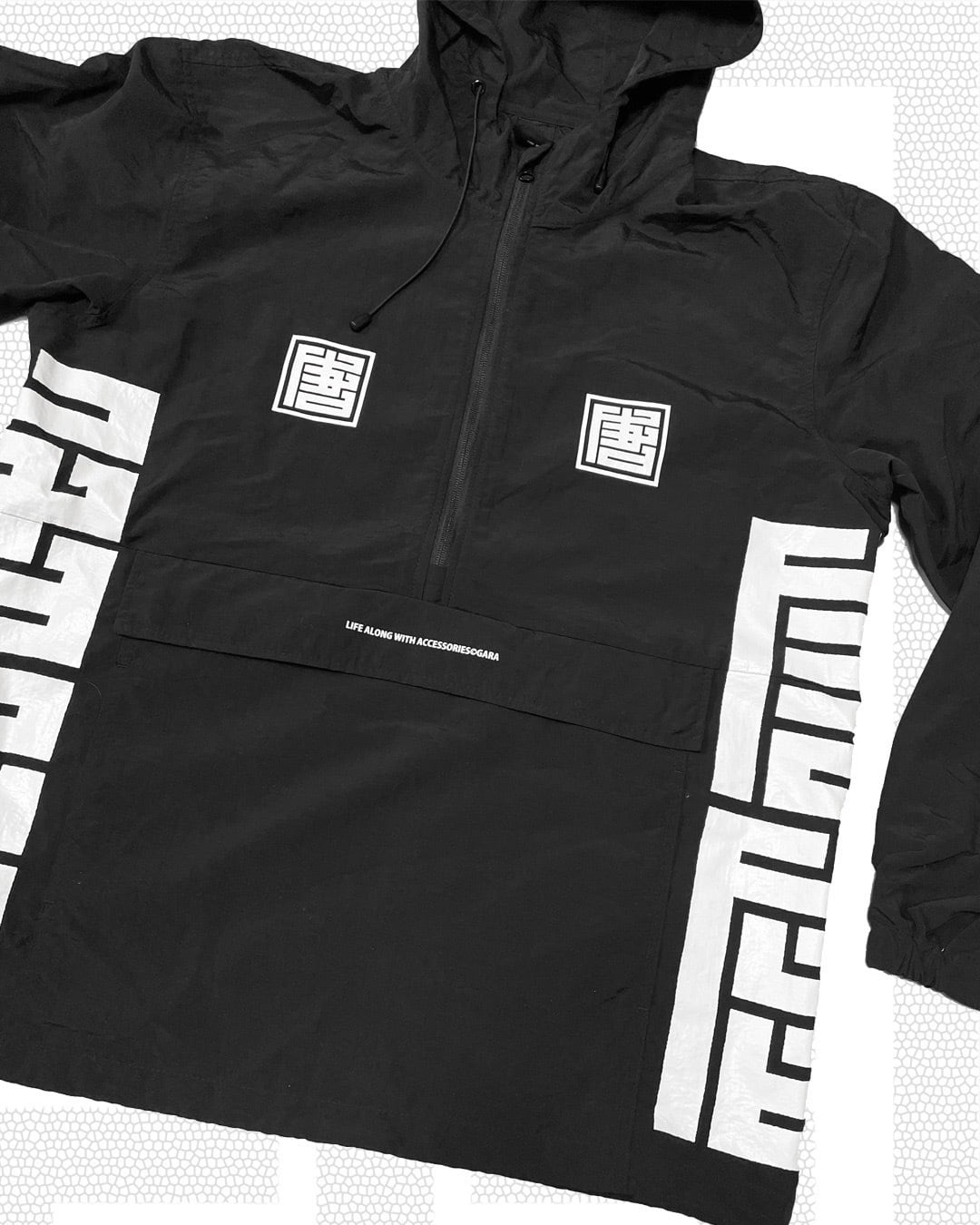 GARAアイコンの一つである角文字をプリントしたオーバーサイズのアノラック。