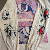 シルクスクリーンプリントはセルフプリント為、ズレや掠れムラ、色飛びなどがございますが、それも全て作り手の意図や、デザインのアジとしてご理解頂ければと思います。