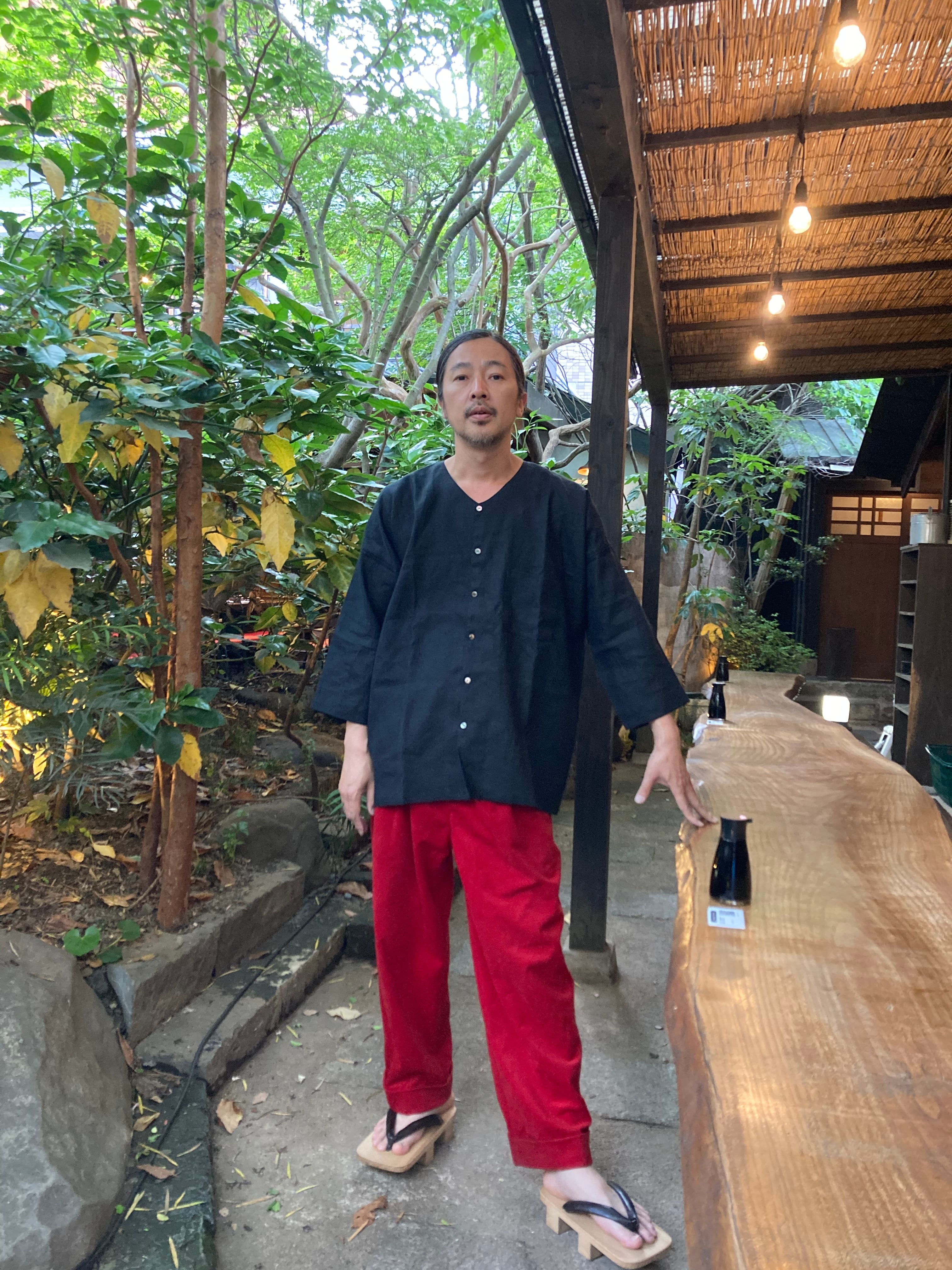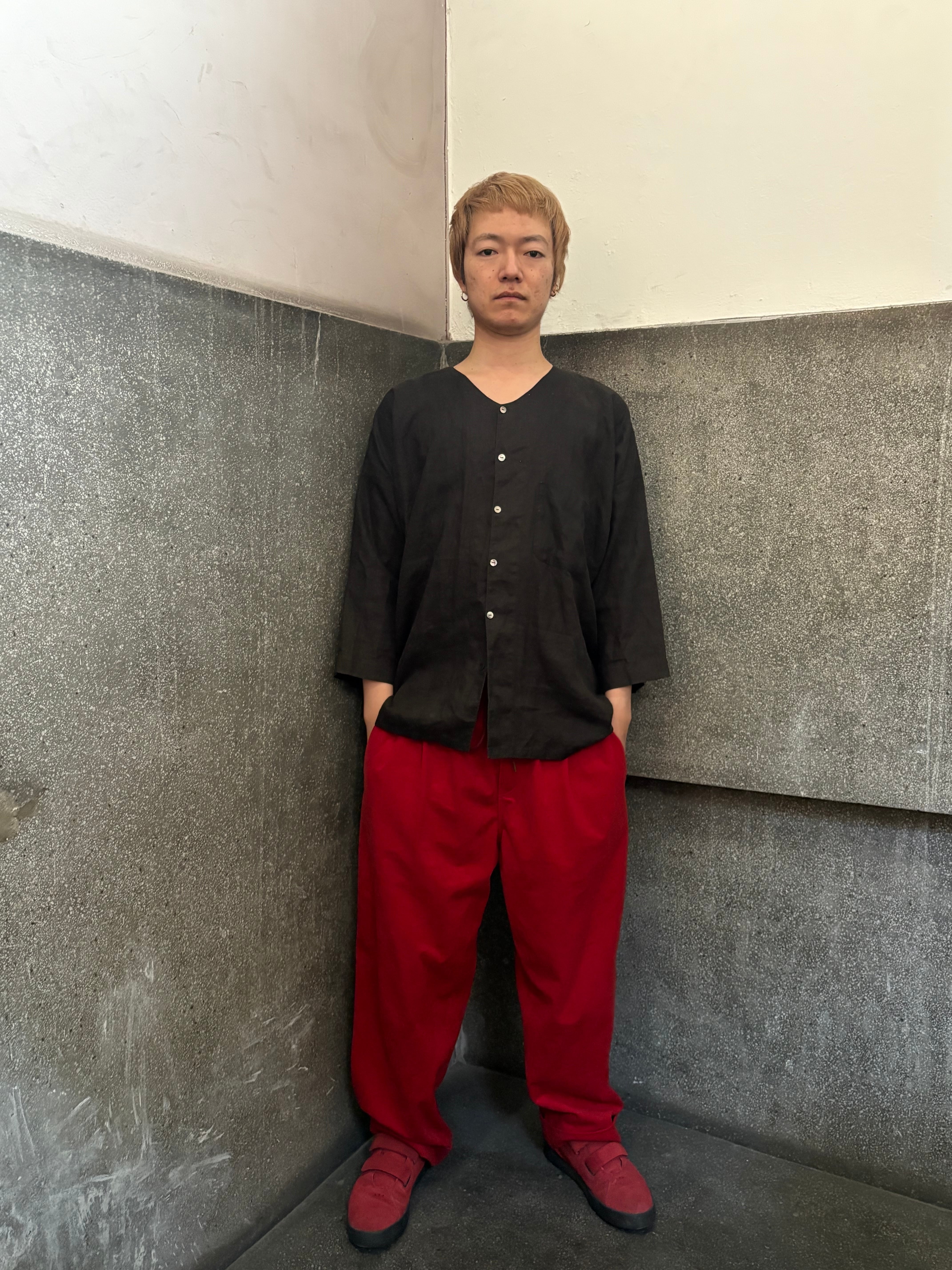 本来ダボシャツ、鯉口シャツと云えばテキ屋さんみたく任侠なイメージですが、ソレのソレを全く感じさせない振り幅の広いシャツです。