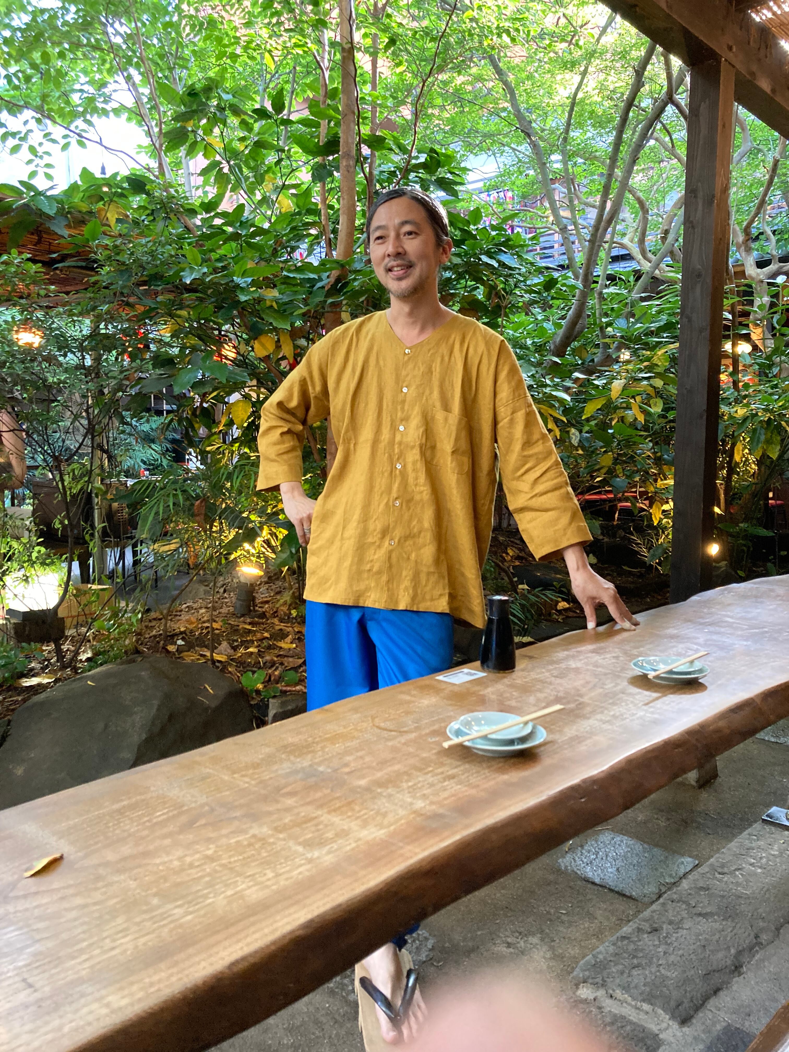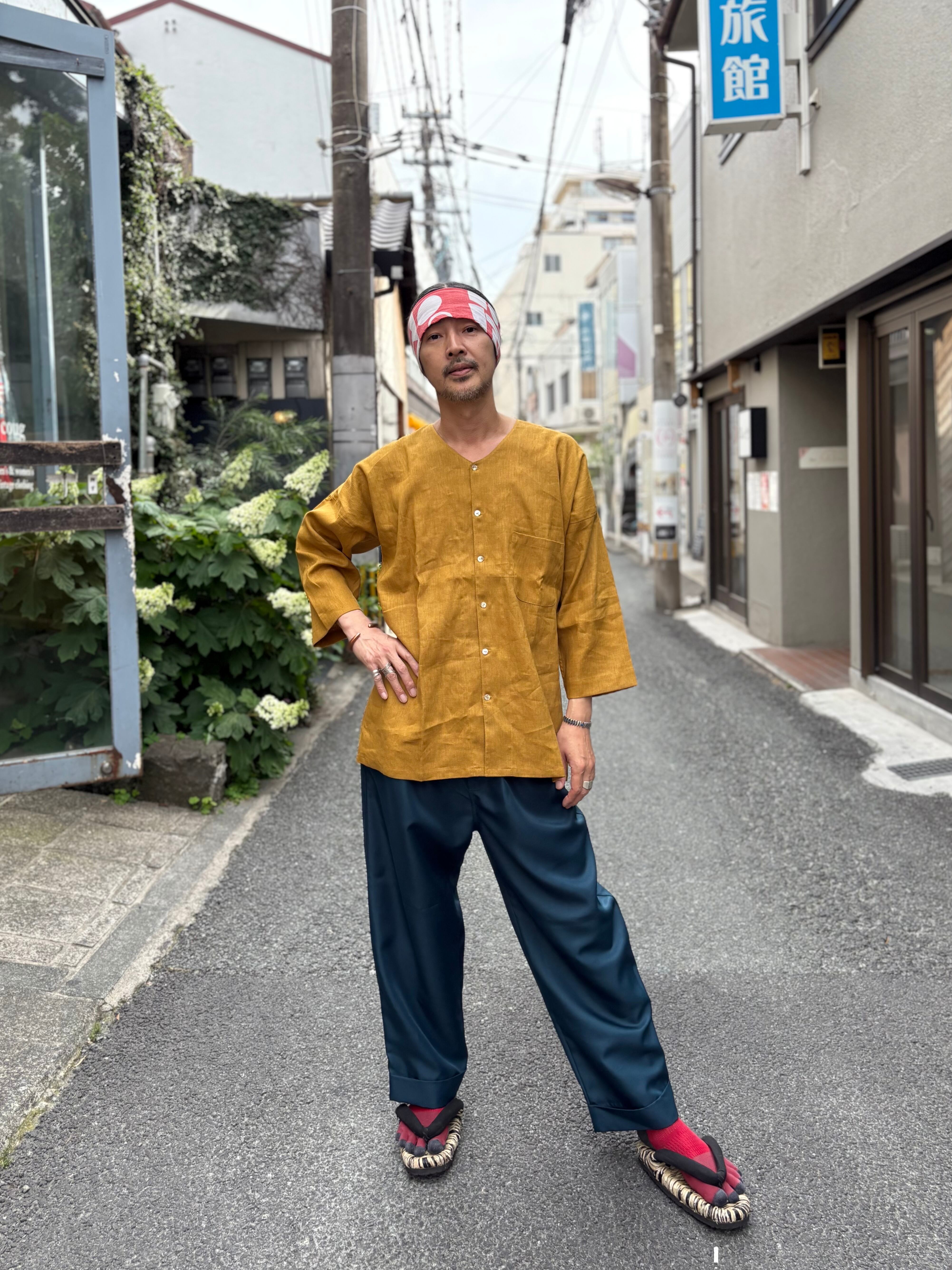 本来ダボシャツ、鯉口シャツと云えばテキ屋さんみたく任侠なイメージですが、ソレのソレを全く感じさせない振り幅の広いシャツです。